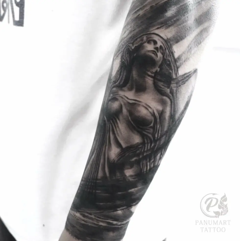 She impressed her teacher so much during her apprenticeship that he hired her to work in his shop. But only a few months later Ahm went to open Panumart Tattoo.